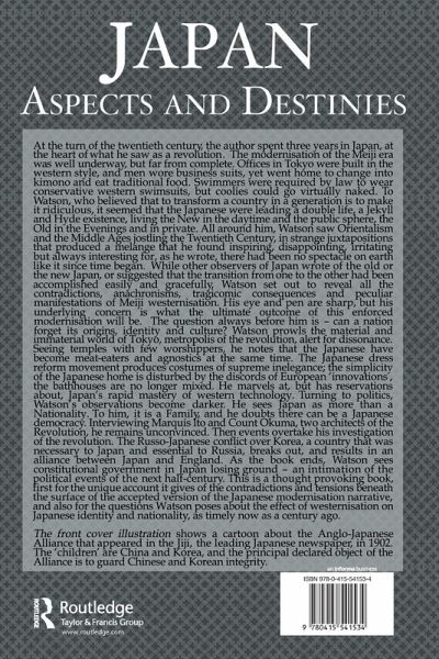 First published in 2007. At the turn of the twentieth century, the author spent three years in Japan, at the heart of what he saw as a revolution. The modernization of the Meiji era was well underway, but far from complete. All around him, Watson saw orientalism and feudalism jostling with the twentieth century, in strange juxtapositions that produced a melange that he found inspiring, disappointing and irritating but always interesting for, as he wrote, there had been no spectacle on earth like it since time began. While other observers of Japan wrote of the Old or the New Japan, or suggested that the transition from one to the other had been accomplished easily and gracefully, Watson set out to reveal all the contradictions, anachronisms, tragicomic consequences and peculiar manifestations of Meiji westernisation. His eye and pen are sharp, but his underlying concern is what the ultimate outcome of this enforced modernisation will be. The question always before him is - can a nation forget its origins, identity and culture? Watson prowls the material and immaterial world of Tokyo, metropolis of the revolution, alert for dissonance. The Japanese dress reform movement produces costumes of supreme inelegance; the simplicity of the Japanese home is disturbed by the discords of European 'innovations', the bathhouses are no longer mixed. As the book ends, Watson sees constitutional government in Japan losing ground - an intimation of the political events of the next half-century. This is a thought-provoking book, first for the unique account it gives of the contradictions and tensions beneath the surface of the accepted version of the Japanese modernisation narrative, and also for the questions Watson poses about the effect of westernisation of Japanese identity and nationality, as timely now as it was a century ago.