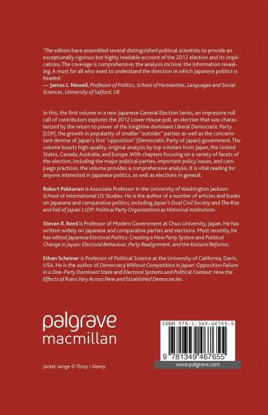Preface List of Abbreviations Contributor Bios Introduction 1. Introduction 2. Japanese Politics Between the 2009 and 2012 Elections 3. Keeping It Together: Party Unity and the 2012 Election; Ben Nyblade 4. The Japanese General Election of 2012: The LDP Wins Big by Default PART I: POLITICAL PARTIES 5. The LDP's Path Back to Power: The Liberal Democratic Party; Masahisa Endo 6. The Remains of the DPJ: The Democratic Party of Japan; Robert Weiner 7. Challenging the Two-Party System: Third Force Parties in the 2012 Election 8. Komeito - In Search of Independence; Axel Klein PART II: CAMPAIGNING, CANDIDATES, AND DISTRICTS 9. Candidate Recruitment for the 2012 Election: New Parties, New Methods... Same Old Faces?; Dan Smith 10. New Inter-Election Campaign Tools; Kuniaki Nemoto 11. Malapportionment and the 2012 Election; Ray Christensen 12. What the 2012 Lower House Elections Has to Say about Japan's Urban-Rural Divide; Kay Shimizu 13. Campaign Finance Irregularities, Sex Scandals and the Election; Matt Carlson 14. Women Candidates and Political Parties in Election 2012; Sherry Martin Murphy PART III: GOVERNANCE AND POLICY 15. Foreign Policy as an Election Issue; Paul Midford 16. Election Surprise: Abenomics and Central Bank Independence Trump Nationalism and Fukushima; Yves Tiberghien 17. Right Rising? Ideology and the 2012 House of Representatives Election; Chris Winkler 18. Farmers, Agricultural Policies and the Election; Aurelia George Mulgan 19. Governance with a Twist: How Bicameralism affects Japanese Lawmaking; Michael Thies and Yuki Yanai