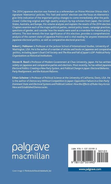'The authors of this comprehensive analysis of the 2014 general election in Japan have produced one of the most important studies of Japanese electoral politics to appear in many years. It is essential reading for anyone - student, scholar and policy maker - interested not only in the 2014 election, but in Japan's political democracy and its future.' Gerald Curtis, Burgess Professor of Political Science, Columbia University, USA