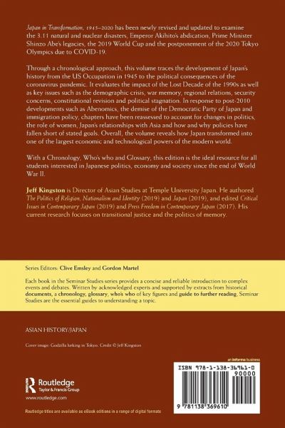 Japan in Transformation, 1945-2020 has been newly revised and updated to examine the 3.11 natural and nuclear disasters, Emperor Akihito's abdication, Prime Minister Shinzo Abe's legacies, the 2019 World Cup and the postponement of the 2020 Tokyo Olympics due to COVID-19.