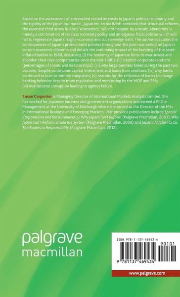 Susan Carpenter is Managing Director of International Markets Analysts Limited. She has worked for Japanese business and government organizations, and has also served as the Director of the MSc in International Business and Emerging Markets at the University of Edinburgh Business School, UK. Her previous publications include Special Corporations and the Bureaucracy: Why Japan Can't Reform (Palgrave Macmillan, 2003), Why Japan Can't Reform: Inside the System (Palgrave Macmillan, 2008) and Japan's Nuclear Crisis (Palgrave Macmillan, 2011).