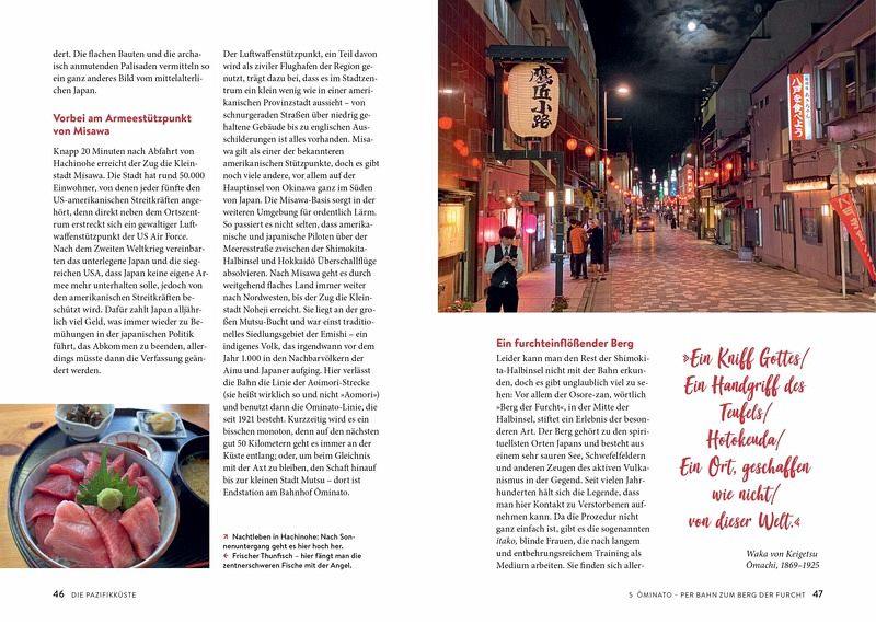 Matthias Reich hat wirklich außergewöhnliche Strecken auf allen drei Hauptinseln gefunden, die das ganze Land kulturell und geografisch „erschließen“ und das meist fernab der ausgetretenen Touristenpfade. Natürlich sind auch Standardziele (Kyoto, Tokyo, Osaka etc.) mit auf dem Fahrplan, aber sie sind keine Schwerpunkte, sondern nehmen genauso viel Raum ein, wie Shimabara oder Kushiro, die sonst eher nur Spezialisten kennen. Auf den Strecken liegen viele kleine und größere Entdeckungen, die dem normalen Japantouristen meist verborgen bleiben, einfach weil es aufwendig und langwierig ist, dort hinzukommen. Auch das war für mich in der Vergangenheit ein Grund, einige der Ziele, die ich inhaltlich kannte, nicht zu besuchen. Matthias Reich verbindet den Aufwand aber z. B. mit außergewöhnlichen Sonderzügen (von denen es in Japan viele gibt!), nutzt kreative Streckenführungen oder gibt Tipps zur Fahrtunterbrechung und wie man sich die Zeit einteilt. Die übersichtliche Struktur und informativen Bilder runden das Ganze sinnvoll ab. Sobald kleine Privatbahnen involviert sind, liefert der Autor auch ganz konkrete Informationen zu Webseiten und Fahrplänen, die er bei JR-Strecken eher nur summarisch andeutet. Leider hat die ehemals sehr komfortable und umfangreiche Fahrplanauskunft Hyperdia viele Services eingestellt und aktualisiert auch nicht mehr regelmäßig, da hätte ich mir von Matthias Reich vielleicht einen aktuellen Tipp gewünscht, ansonsten bin ich wunschlos glücklich.