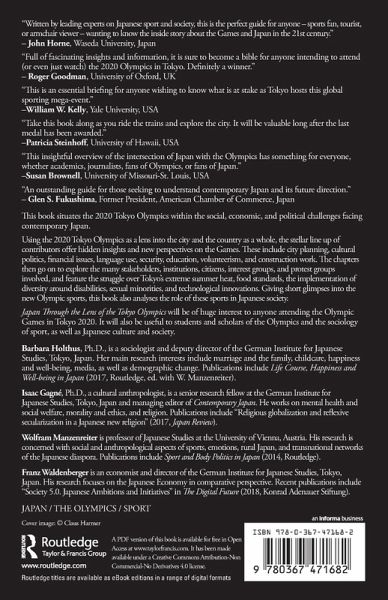 This book situates the 2020 Tokyo Olympics within the social, economic, and political challenges facing contemporary Japan. Using the 2020 Tokyo Olympics as a lens into the city and the country as a whole, the stellar line up of contributors offer hidden insights and new perspectives on the Games. These include city planning, cultural politics, financial issues, language use, security, education, volunteerism, and construction work. The chapters then go on to explore the many stakeholders, institutions, citizens, interest groups, and protest groups involved, and feature the struggle over Tokyo's extreme summer heat, food standards, the implementation of diversity around disabilities, sexual minorities, and technological innovations. Giving short glimpses into the new Olympic sports, this book also analyses the role of these sports in Japanese society. Japan Through the Lens of the Tokyo Olympics will be of huge interest to anyone attending the Olympic Games in Tokyo 2020. It will also be useful to students and scholars of the Olympics and the sociology of sport, as well as Japanese culture and society.