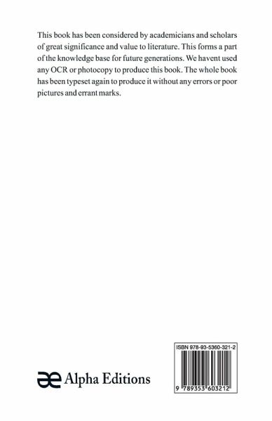 This book has been considered by academicians and scholars of great significance and value to literature. This forms a part of the knowledge base for future generations. We have represented this book in the same form as it was first published. Hence any marks seen are left intentionally to preserve its true nature.