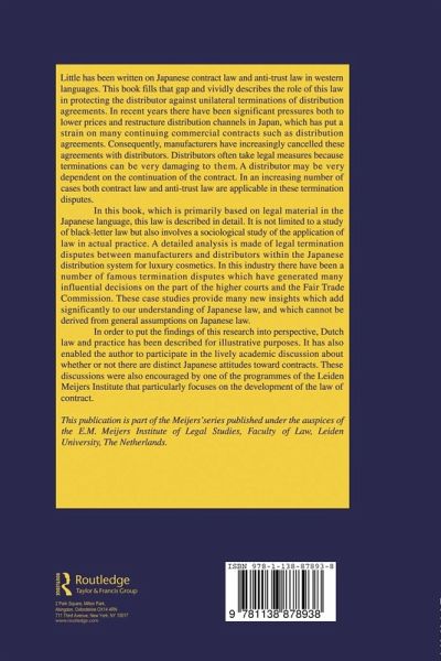 Little has been written on Japanese contract law and anti-trust law in Western languages. This book describes the role of this law in protecting the distributor against unilateral terminations of distribution agreements. There have been significant pressures both to lower prices and restructure distribution channels in Japan which have strained many distribution agreements. This volume, based primarily on Japanese language legal material, not only involves a study of applicable black-letter law, but also a sociological study of its application in practice. Detailed analysis has been made in particular of famous legal termination cases during the 1990s in the Japanese luxury cosmetics distribution system which generated influential decisions by the higher courts and the Fair Trade Commission, providing new insights into whether or not there are distinct Japanese attitudes towards contracts.
