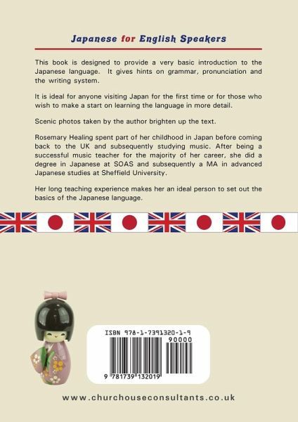 Japanese for English Speakers: The author, Rosemary Healing, lived in Japan as a child and has taught Japanese in England for many years. She has a thorough appreciation of the problems that are found in the basic learning of Japanese and has presented them so they can be easily understood. This book is designed to provide a very basic introduction to the Japanese language. It gives hints on grammar, pronunciation and the writing system. It is ideal for anyone visiting Japan for the first time or for those who wish to make a start on learning the language in more detail. Scenic photos taken by the author brighten up the text.