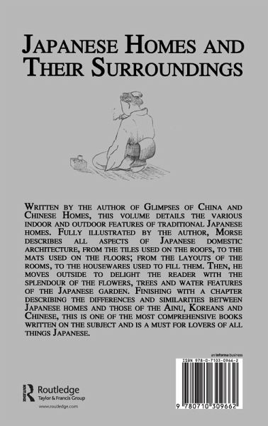 First Published in 2005. Written by the author of glimpses of China and Chinese homes, this volume details the various indoor and outdoor features of traditional Japanese homes. Fully illustrated by the author, morse describes all aspects of Japanese domestic architecture, from the tiles used on the roofs, to the mats used on the floors; from the layouts of the rooms, to the housewares used to fill them. Then, he moves outside to delight the reader with the splendour of the flowers, trees and water features of the Japanese garden. Finishing with a chapter describing the differences and similarities between Japanese homes and those of the Ainu, Koreans and Chinese, this is one of the most comprehensive books written on the subject and is a must for lovers of all things Japanese.