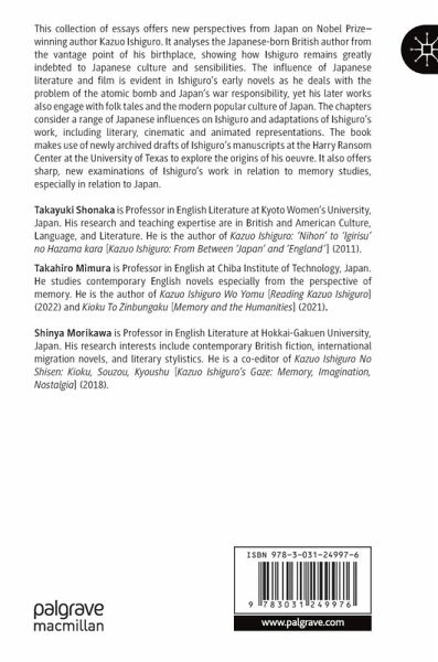 This collection of essays offers new perspectives from Japan on Nobel Prize-winning author Kazuo Ishiguro. It analyses the Japanese-born British author from the vantage point of his birthplace, showing how Ishiguro remains greatly indebted to Japanese culture and sensibilities. The influence of Japanese literature and film is evident in Ishiguro's early novels as he deals with the problem of the atomic bomb and Japan's war responsibility, yet his later works also engage with folk tales and the modern popular culture of Japan. The chapters consider a range of Japanese influences on Ishiguro and adaptations of Ishiguro's work, including literary, cinematic and animated representations. The book makes use of newly archived drafts of Ishiguro's manuscripts at the Harry Ransom Center at the University of Texas to explore the origins of his oeuvre. It also offers sharp, new examinations of Ishiguro's work in relation to memory studies, especially in relation to Japan.