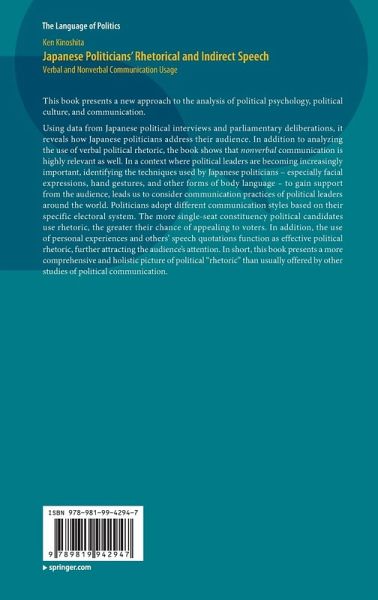 Using data from Japanese political interviews and parliamentary deliberations, it reveals how Japanese politicians address their audience. In addition to analyzing the use of verbal political rhetoric, the book shows that nonverbal communication is highly relevant as well. In a context where political leaders are becoming increasingly important, identifying the techniques used by Japanese politicians - especially facial expressions, hand gestures, and other forms of body language - to gain support from the audience, leads us to consider communication practices of political leaders around the world. Politicians adopt different communication styles based on their specific electoral system. The more single-seat constituency political candidates use rhetoric, the greater their chance of appealing to voters. In addition, the use of personal experiencesand others'speech quotations function as effective political rhetoric, further attracting the audience's attention. In short, this book presents a more comprehensive and holistic picture of political "rhetoric" than usually offered by other studies of political communication.