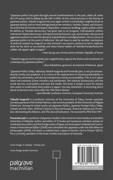 - Han Seung-soo, former prime minister, Republic of Korea"Takashi Inoguchi and Purnendra Jain magnificently capture the drama and excitement of contemporary Japanese politics."