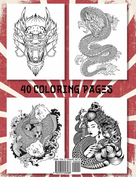 Looking for a fun coloring book with Japanese tattoo designs? What you will find inside:40 Coloring Pages. 8.5x11 inches, perfect for detailed coloring. Many hours of relaxation and away from the screen. One-sided coloring pages, with black back sides to prevent bleed-through.