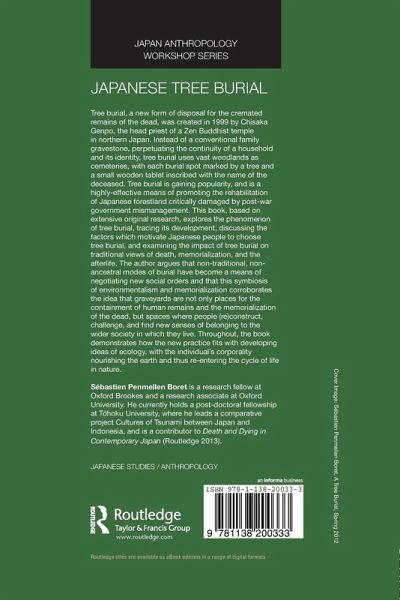 Tree burial, a new form of disposal for the cremated remains of the dead, was created in 1999 by Chisaka Genpo, the head priest of a Zen Buddhist temple in northern Japan. Instead of a conventional family gravestone, perpetuating the continuity of a household and its identity, tree burial uses vast woodlands as cemeteries, with each burial spot marked by a tree and a small wooden tablet inscribed with the name of the deceased. Tree burial is gaining popularity, and is a highly-effective means of promoting the rehabilitation of Japanese forestland critically damaged by post-war government mismanagement. This book, based on extensive original research, explores the phenomenon of tree burial, tracing its development, discussing the factors which motivate Japanese people to choose tree burial, and examining the impact of tree burial on traditional views of death, memorialisation, and the afterlife. The author argues that non-traditional, non-ancestral modes of burial have become a means of negotiating new social orders and that this symbiosis of environmentalism and memorialisation corroborates the idea that graveyards are not only places for the containment of human remains and the memorialisation of the dead, but spaces where people (re)construct, challenge, and find new senses of belonging to the wider society in which they live. Throughout, the book demonstrates how the new practice fits with developing ideas of ecology, with the individual's corporality nourishing the earth and thus re-entering the cycle of life in nature.