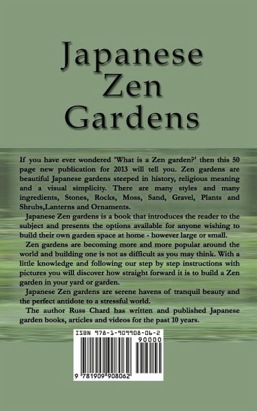 If you have ever wondered 'What is a Zen garden?' then this 50 page new publication for 2013 will tell you. Zen gardens are beautiful Japanese gardens steeped in history, religious meaning and a visual simplicity. There are many styles and many ingredients, Stones, Rocks, Moss, Sand, Gravel, Plants and Shrubs,Lanterns and Ornaments. Japanese Zen gardens is a book that introduces the reader to the subject and presents the options available for anyone wishing to build their own garden space at home - however large or small. Zen gardens are becoming more and more popular around the world and building one is not as difficult as you may think. With a little knowledge and following our step by step instructions with pictures you will discover how straight forward it is to build a Zen garden in your yard or garden. Japanese Zen gardens are serene havens of tranquil beauty and the perfect antidote to a stressful world. The author Russ Chard has written and published Japanese garden books, articles and videos for the past 10 years.