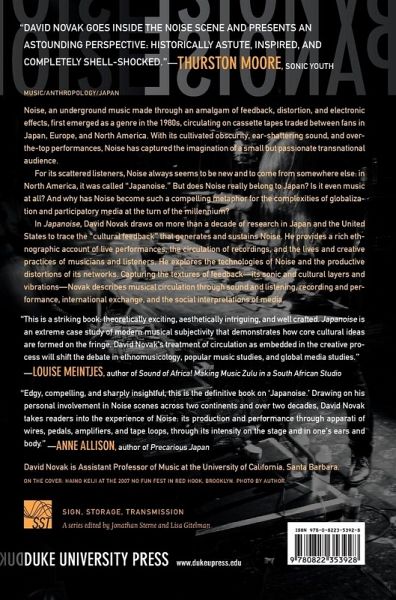 Drawing on more than a decade of research in Japan and the United States, David Novak traces the "cultural feedback" that generates and sustains Noise, an underground music genre combining distortion and electronic effects.