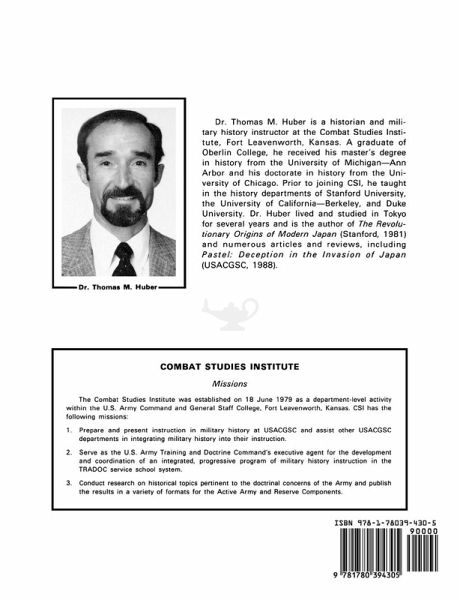 Originally published in 1990 by the U.S. Army Combat Studies Institute. From April to June 1945, U.S. and Imperial Japanese Army (lJA) forces fought fiercely for control of the island of Okinawa. The Japanese Imperial General Headquarters (IGHO) had determined after U.S. strikes on Truk in February 1944 that sooner or later the Americans would seize Okinawa as a forward base for the invasion of Japan. The IJA 32d Army was established on Okinawa in March 1944 to forestall this eventuality and immediately faced the challenge of how to deal not only with superior numbers of U.S. troops but also with overwhelming American firepower by air, land, and sea. The 32d Army's innovative staff had one year in which to invent and implement a new form of underground warfare that would be proof against the Americans' abundant bombs and tanks. Their methods were devised in the field in defiance both of the IJA's traditional light infantry doctrine and of IGHO's preoccupation with air power.