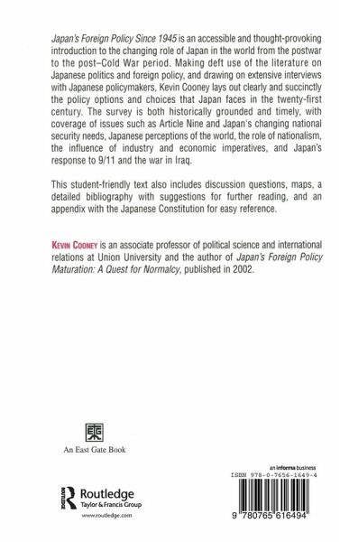 This student-friendly text provides a detailed and up-to-date assessment of Japan's foreign policy since 1945, including policy options and choices that Japan faces in the twenty-first century. Using information based on interviews with policymakers in Japan, the author provides new insight into Japan's foreign policy options and analyzes the nation's evolving role in international affairs. The book begins with a brief overview of major issues related to Japan's foreign policy since the mid-nineteenth century, and then focuses on the direction of Japanese foreign policy from 1945 to the present. It examines issues such as Article Nine of the Japanese Constitution, national security needs, the way Japan views the world around it, the role of nationalism in setting policy, and the influence of big industry. It also includes material on Japan's response to 9/11 and the war in Iraq. Designed for both undergraduate and graduate level courses, the text includes Discussion Questions, maps, a detailed bibliography with suggestions for further reading, and an Appendix with the Japanese Constitution for easy reference.