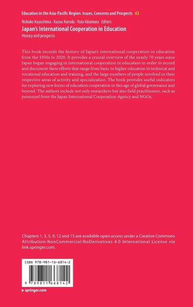 This book records the history of Japan's international cooperation in education from the 1950s to 2020. It provides a crucial overview of the nearly 70 years since Japan began engaging in international cooperation in education in order to record and document these efforts that range from basic to higher education to technical and vocational education and training, and the large numbers of people involved in their respective areas of activity and specialization. The book provides useful indicators for exploring new forms of education cooperation in this age of global governance and beyond. The authors include not only researchers but also field practitioners, such as personnel from the Japan International Cooperation Agency and NGOs.