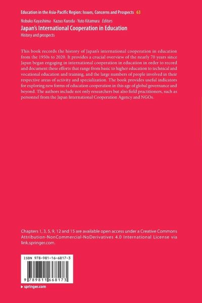 This book records the history of Japan's international cooperation in education from the 1950s to 2020. It provides a crucial overview of the nearly 70 years since Japan began engaging in international cooperation in education in order to record and document these efforts that range from basic to higher education to technical and vocational education and training, and the large numbers of people involved in their respective areas of activity and specialization. The book provides useful indicators for exploring new forms of education cooperation in this age of global governance and beyond. The authors include not only researchers but also field practitioners, such as personnel from the Japan International Cooperation Agency and NGOs.