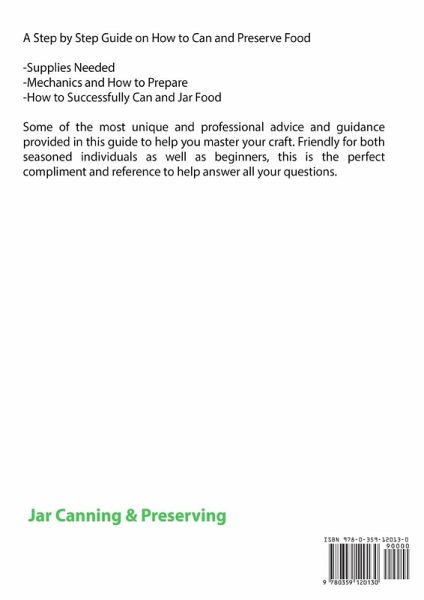 A Step by Step Guide on How to Can and Preserve Food -Supplies Needed -Mechanics and How to Prepare -How to Successfully Can and Jar Food --> Scroll to the top of the page and click add to cart to purchase instantly <-- Disclaimer: This author and or rights owner(s) make no claims, promises, or guarantees about the accuracy, completeness, or adequacy of the contents of this book, and expressly disclaims liability for errors and omissions in the contents within. This product is for reference use only.