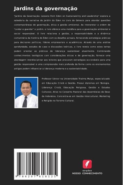 "Jardins da Governação: Lessons from Eden on Sustainability and Leadership" explora a sabedoria da narrativa do Jardim do Éden no Livro do Génesis para abordar questões contemporâneas de governação, ética e gestão ambiental. Ao interpretar a ordem de "cuidar e guardar" o jardim, o livro oferece uma metáfora para a governação ambiental e social responsável. O livro relaciona a gestão, a responsabilidade e a dinâmica comunitária da história do Éden com os desafios actuais, fornecendo estratégias práticas para decisores políticos, líderes empresariais e académicos. Através de uma análise aprofundada, estudos de caso e discussões teóricas, o livro revela como estes temas podem orientar as práticas de liderança sustentável atualmente. Combinando conhecimentos teológicos com considerações éticas e de governação, fornece uma abordagem interdisciplinar aos leitores que procuram estratégias accionáveis para uma gestão responsável e uma compreensão mais profunda da forma como os ensinamentos antigos podem influenciar a liderança moderna e a sustentabilidade.