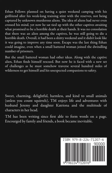 Ethan Fellows planned on having a quiet weekend camping with his girlfriend after his week-long training stint with the reserves, not being captured by unknown murderous aliens. The idea of aliens had never even crossed his mind, yet now he sat tied up with the other captives awaiting what promised to be a horrible death at their hands. It was no consolation that there was an alien among the captives, he was still going to die a horrible death. Overall, it had been a shitty weekend and it didn't look like it was going to improve any time soon. Escape was the last thing Ethan could imagine, even when a small battered woman joined the dwindling number of prisoners. But the small battered woman had other ideas. Along with the captive alien, Ethan finds himself rescued. But now he is faced with a new set of challenges as he must somehow traverse several hundred miles of wilderness to get himself and his unexpected companions to safety.
