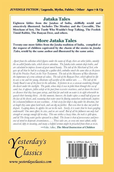 Eighteen fables from the Jatakas of India, skillfully retold and attractively illustrated. Includes The Monkey and the Crocodile, The Merchant of Seri, The Turtle Who Wouldn't Stop Talking, The Foolish Timid Rabbit, The Banyan Deer, and others. Suitable for ages 7 and up.