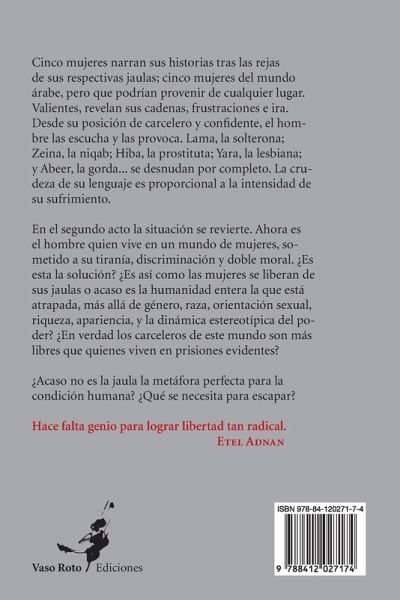 Cinco mujeres narran sus historias tras las rejas de sus respectivas jaulas; cinco mujeres del mundo árabe, pero que podrían provenir de cualquier lugar. Valientes, revelan sus cadenas, frustraciones e ira. Desde su posición de carcelero y confidente, el hombre las escucha y las provoca. Lama, la solterona; Zeina, la niqab; Hiba, la prostituta; Yara, la lesbiana; y Abeer, la gorda... se desnudan por completo. La crudeza de su lenguaje es proporcional a la intensidad de su sufrimiento.