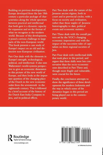 This book presents a case study of Europe's impact on an old and distinctive non-European civilisation. Part One deals with the elements in Europe's strength, technological, political and intellectual. It also uses Wallerstein's world-systems perspective to give an economic dimension to this picture of the new world of Europe, and then looks at the important question of the changing place of the Dutch in the new economic order from the seventeenth to the eighteenth century. This is followed by a brief account of the history of the Dutch East-India Company in Java, and its political effects. Part Two deals with the nature of the Javanese ancien regime, both in court and in provincial circles, with a focus on society and civilisation, rather than those staples of Javanese historiography to date, political events and economic statistics. Part Three deals with the overall pattern set by the VOC's changing economic imperatives and with the impact of the successive tides of capitalism on three regional societies of Java. Part Four deals with intellectual shifts that took place in this period, and argues that these shifts were less conservative than the socio-economic ones described in Part Three and, though more fragile and vulnerable, were crucial for the future. The conclusion attempts to show the significance of these developments for modern Indonesia and the way in which some of the dynamics begun in this period are being played out in the contemporary world.