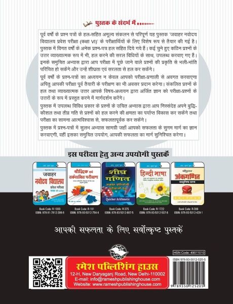 This success-oriented mentoring book has been specially published for the aspirants of 'Jawahar Navodaya Vidyalaya Entrance Exam' for admission to Class VI. Based on the Current Pattern of the exam, the book also comprises several Previous Years' Solved Papers for aspirants to be familiar with the trends of exam. The book is highly recommended for the aspirants to Sharpen their Problem Solving Skills with intensive practice of numerous questions provided in the book, and prepare themselves to face the exam with Confidence, Successfully. The book contains ample amount of Study and Practice Material comprising numerous Question-Answers and Explanations, wherever necessary, to prepare you well for the exam. All the Relevant & Important chapters & topics are covered in the book at appropriate length in a Reader-friendly manner. Both the Study and Practice Material have been prepared by respective subject-experts with due diligence. In short, you can rely upon this book for study, practice and during the precious moments before the exam. While the well-structured study and practice material of this book is designed to Enable you Achieve Complete Success, your own intelligent study and practice, coupled with this, will definitely Ensure you a seat in this Prestigious School, paving the way for a Bright Future.