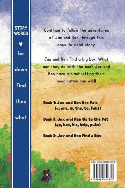 Jax and Ren books are perfect for NEW Readers (pre-K, kindergarten, first grade, or struggling readers)Do you have a young reader who knows consonant and short vowel letter sounds? Are they working on blending the letter sounds together to make words? Decode by Heart presents Jax and Ren! Follow the adventures of best friends, Jax (a tan bear cub) and Ren (a red fox). Jax and Ren books were designed with the science of reading research to be the best decodable readers. Each book in the series contains simple, easy-to-read sentences and charming illustrations supporting the text. The sentences are written with decodable CVC words and a few story words that build with each book. Book 3: Jax and Ren Find a Box - Jax and Ren find a big box. What can they do with the box? Jax and Ren have a blast letting their imagination run wild!