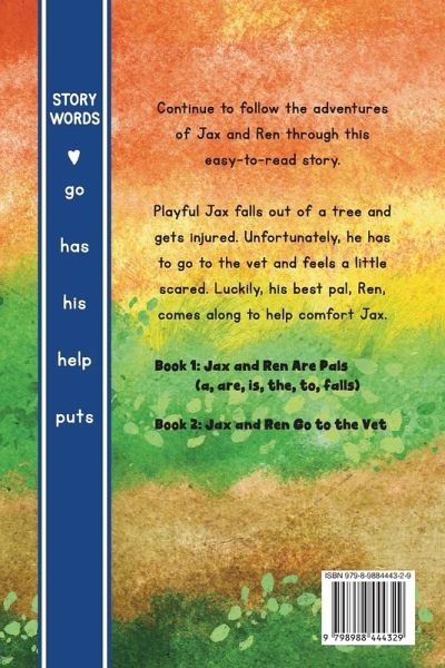Jax and Ren books are perfect for NEW Readers (pre-K, kindergarten, first grade, or struggling readers)Do you have a young reader who knows consonant and short vowel letter sounds? Are they working on blending the letter sounds together to make words? Decode by Heart presents Jax and Ren! Follow the adventures of best friends, Jax (a tan bear cub) and Ren (a red fox). Jax and Ren books were designed with the science of reading research to be the best decodable readers. Each book in the series contains simple, easy-to-read sentences and charming illustrations supporting the text. The sentences are written with decodable CVC words and a few story words that build with each book. Book 2: Jax and Ren Go to the Vet - Playful Jax falls out of a tree and gets injured. He has to go to the vet and feels a little scared. Luckily, his best pal, Ren, comes along to help comfort Jax.