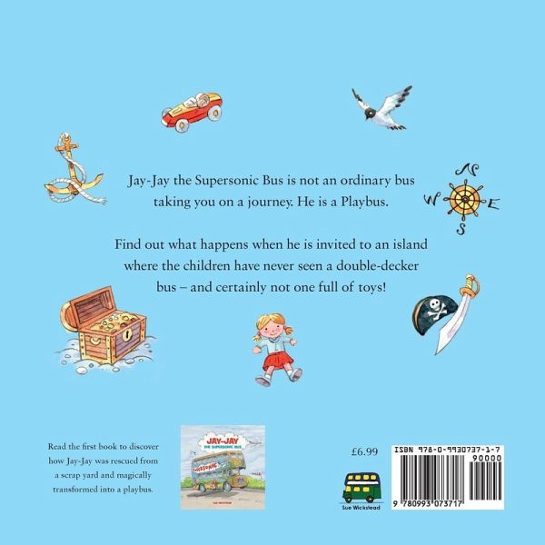 Jay-Jay the Supersonic Bus is a Playbus. Once an ordinary bus left in a scrap-yard he has been converted ready for children to play on. He is able to visit children wherever they are. Upstairs the children can play with toys, read books or dress up in fancy dress clothes. Downstairs the children can paint or draw or even play with sand. A bus full of fun and imagination. In his island Adventure Jay-Jay goes on a small ferry across to an island where the children have never seen a double-decker bus and certainly not one full of toys and games.