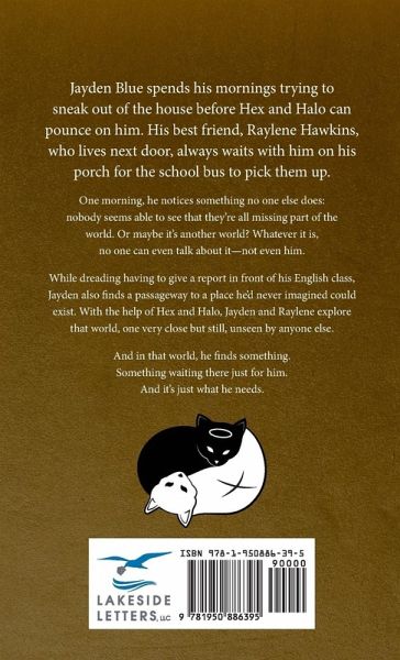 "Find what no one else can find,in a world that only you and your best friend can see." Jayden Blue spends his mornings trying to sneak out of the house before Hex and Halo can pounce on him. His best friend, Raylene Hawkins, who lives next door, always waits with him on his porch for the school bus to pick them up. One morning, he notices something no one else does: nobody seems able to see that they're all missing part of the world. Or maybe it's another world? Whatever it is, no one can even talk about it-not even him. While dreading having to give a report in front of his English class, Jayden also finds a passageway to a place he'd never imagined could exist. With the help of Hex and Halo, Jayden and Raylene explore that world, one very close but still, unseen by anyone else. And in that world, he finds something. Something waiting there just for him. And it's just what he needs.