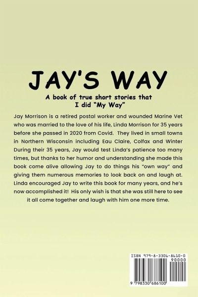 For about 35 years, my wife Linda had been trying to get me to write a book on all the stupid stuff I've done during our marriage. She even came up with the title "JAY'S WAY." Like she told me, "There can't possibly be another person out there who tries to do things their way and have them end up as bad as your's always do!"