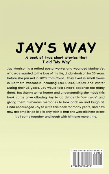 For about 35 years, my wife Linda had been trying to get me to write a book on all the stupid stuff I've done during our marriage. She even came up with the title "JAY'S WAY." Like she told me, "There can't possibly be another person out there who tries to do things their way and have them end up as bad as your's always do!"
