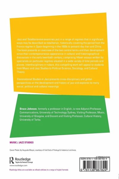 Introduction (Bruce Johnson) Part I: Totalitarian Templates 1. Jazz and Fascism: Contradictions and Ambivalences in the Diffusion of Jazz Music under the Italian Fascist Dictatorship (1925-1935) (Marilisa Merolla) 2. Jazz in Moscow after Stalinism (Rüdiger Ritter) Part II: In the Soviet Shadow 3. Four Spaces, Four Neanings: Narrating Jazz in Late Stalinist Estonia (Heli Reimann) 4. Jazz in Poland: Totalitarianism, Stalinism, Socialist Realism (Igor Pietraszewski) 5. Jazz in Czechoslovakia during the 1950s and 1960s (Wolf-Georg Zaddach) 6. Trouble with the Neighbours: Jazz, Geopolitics, and Finland's Totalitarian Shadow (Marcus O'Dair) Part III: Iberia - Spain 7. Performing the 'Anti-Spanish' Body: Jazz and Biopolitics in the Early Franco Regime (1939-1957) (Iván Iglesias) 8. 'The Purest Essence of Jazz': The Appropriation of Blues in Spain during Franco's Dictatorship (Josep Pedro) Part IV: Iberia - Portugal 9. Jazz and the Portuguese Dictatorship before and after the Second World War: From Moral Panic to Suspicious Acceptance (Pedro Roxo) 10. A Kind of 'in-between': Jazz and Politics in Portugal (1958-1974) (Pedro Cravinho) Part V: Apartheid South Africa 11. A Climbing Vine through Concrete: Jazz in 1960s Apartheid South Africa (Jonathan Eato) 12. 'Fanfare for the warriors': Jazz, Education, and State Control in 1980s South Africa and After (Mark Duby) Part VI: To the East 13. From the 'Sultan' to the Persian Side: Jazz in Iran and Iranian Jazz since the 1920s (G. J. Breyley) 14. On the Marginality of Contemporary Jazz in China: The Case of Beijing (Adiel Portugali) 15. Afterword: Conclusions (Bruce Johnson)
