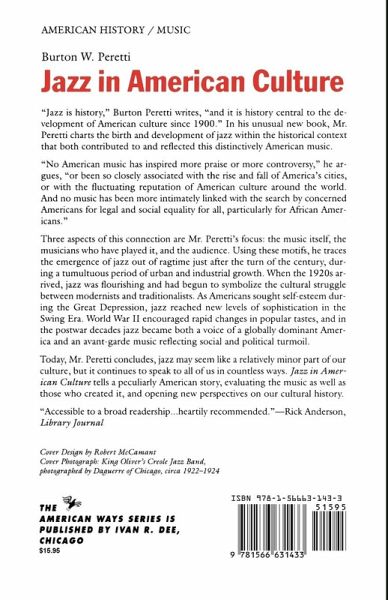 The first compact history of jazz to place it within broader context. With an eye on the music, the musicians, and the audience, Mr. Peretti traces the emergence of jazz and follows its progress to the present, showing how it has reflected shifting American values. "Heartily recommended...accessible to a broad readership." -Library Journal. American Ways Series.