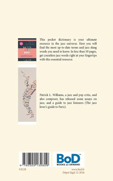 This pocket dictionary is your ultimate resource in the jazz universe. Here you will find the most up-to-date terms and jazz slang words you need to know. In less than 50 pages, get countless jazz facts right at your fingertips with this essential resource.