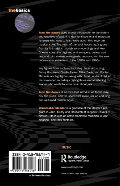 Jazz: The Basics gives a brief introduction to a century of jazz, ideal for students and interested listeners who want to learn more about this important musical style. The heart of the book traces jazz's growth from its folk origins through early recordings and New Orleans stars; the big-band and swing era; bebop; cool jazz and third stream; avant-garde; jazz-rock; and the neo-conservative movement of the 1980s and 1990s. Key figures from each era including: Louis Armstrong, Benny Goodman, Charlie Parker, Miles Davis, and Wynton Marsalis are highlighted along with classic works. The book concludes with a list of the 100 essential recordings to own, along with a timeline and glossary. Jazz: The Basics serves as an excellent introduction to the players, the music, and the styles that make jazz 'America's classical music.'