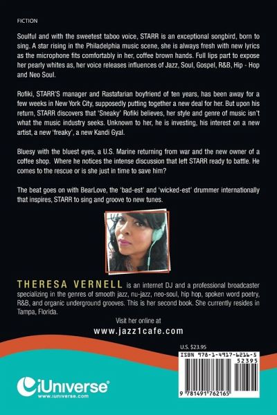 Soulful and with the sweetest taboo voice, STARR is an exceptional songbird, born to sing. A star rising in the Philadelphia music scene, she is always fresh with new lyrics as the microphone fits comfortably in her, coffee brown hands. Full lips part to expose her pearly whites as, her voice releases influences of Jazz, Soul, Gospel, R&B, Hip - Hop and Neo Soul. Rofiki, STARR'S manager and Rastafarian boyfriend of ten years, has been away for a few weeks in New York City, supposedly putting together a new deal for her. But upon his return, STARR discovers that 'Sneaky' Rofiki believes, her style and genre of music isn't what the music industry seeks. Unknown to her, he is investing, his interest on a new artist, a new 'freaky', a new Kandi Gyal. Bluesy with the bluest eyes, a U.S. Marine returning from war and the new owner of a coffee shop. Where he notices the intense discussion that left STARR ready to battle. He comes to the rescue or is she just in time to save him? The beat goes on with BearLove, the 'bad-est' and 'wicked-est' drummer internationally that inspires, STARR to sing and groove to new tunes.