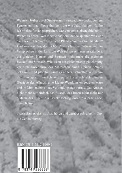 Jazzistisches, das ist: Jazz hören und darüber schreiben - über die Zeiten hinweg. - Der 'Living Space' der Musik: vom 'Africana' in Zürich über die 'Jamboree Jazzcava' in Barcelona in den frühen sechziger Jahren bis zur 'Jazz Galerie', dem 'Quartier Latin', dem 'Quasimodo', dem 'Konzertraum Honecker' und anderen Veranstaltungsorten in Berlin. Das 'Referenzinstrument' des Körpers. Hörerlebnisse (frühe und späte). Portraits in Fragmenten. Jazzzeitschriften und Jazzpublizistik (André Hodeir, Jacques Réda, Alain Gerber, der "Penguin Guide To Jazz" u.a.m.). Gedanken über den 'geschichtlichen Atem' (insbesondere '68). Zeitenbruch, Zeitenende, Zeitenwende. Klangfarben. Essayistischer Charakter des Schreibens. "As If We Knew".