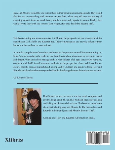 This heartwarming and adventurous tale is told from the perspective of two resourceful kitties named Jazzy Girl Muffin and Rhumbi Boy. These compassionate cats secretly influence their humans to love and rescue more animals. A colorful compilation of anecdotes dedicated to the precious animal lives surrounding us, Seider's work introduces the reader to two lovable cats whose adventures are certain to charm and delight. With an excellent message to share with children of all ages, the adorable narrative, complete with PAW 5s and humorous asides from the perspective of two well-loved kitties, ensures that the message is playful and never preachy. Children and adults will love Jazzy and Rhumbi and their heartfelt message and will undoubtedly eagerly await their adventures to come. US Review of Books