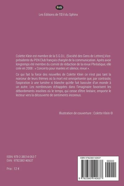 Ce qui fait la force des nouvelles de Colette Klein ce n'est pas tant la noirceur de leurs thèmes où la mort est omniprésente que, par contraste, l'aspiration à une lumière si blanche qu'elle fait basculer d'un monde à un autre. Les nombreuses échappées dans l'imaginaire favorisent les débordements insolites où le temps, qui cesse d'être linéaire, emporte le lecteur vers la découverte de sentiments inconnus.