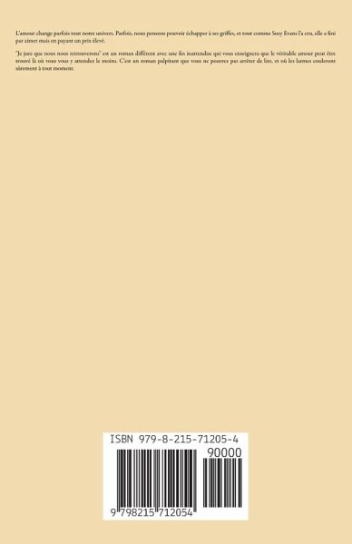 L'amour change parfois tout notre univers. Parfois, nous pensons pouvoir échapper à ses griffes, et tout comme Susy Evans l'a cru, elle a fini par aimer mais en payant un prix élevé. "Je jure que nous nous retrouverons" est un roman différent avec une fin inattendue qui vous enseignera que le véritable amour peut être trouvé là où vous vous y attendez le moins. C'est un roman palpitant que vous ne pourrez pas arrêter de lire, et où les larmes couleront sûrement à tout moment.
