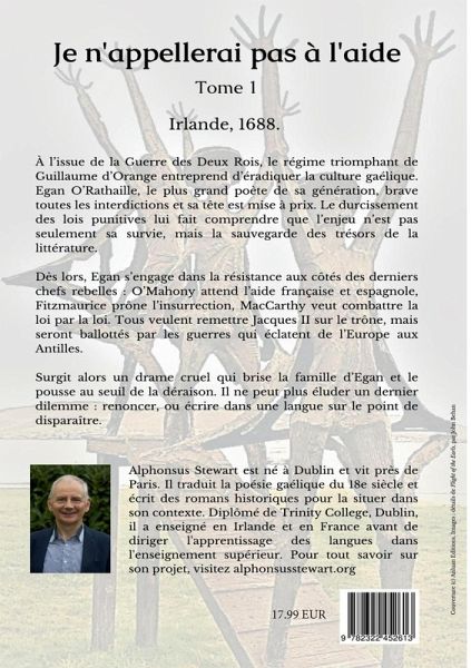 Irlande, 1685-1729. Dès le début du livre, nous sommes transportés dans l'ancien ordre gaélique : école de poésie, festins des chefs de clan, course de chevaux et Cour de Bardes. Mais la Guerre des Deux Rois mène à la trahison de Limerick, et nous accompagnons le héros, Egan O'Rathaille, sous l'oppression, puis dans la résistance, et lors d'une très éclairante tour des Grandes Maisons du Munster. Il brave les épreuves les plus cruelles sans renoncer, jusqu'au délirant voyage dans les sept vallées de son esprit. Après nous avoir promenés des allées vertes du Kerry aux couloirs du pouvoir de Dublin, l'auteur nous entraîne sur la frégate d'un corsaire en guerre, puis sur l'île de Monstserrat aux Antilles ; il nous présente des dizaines de personnages qui viennent de chaque couche de la population. Leurs amours sont tragiques, fortes ou frivoles, et leurs destins sont clivés comme celui de leur pays.L'écriture évolue de scène en scène : poétique, liée ou coupée selon l'ambiance, comme ces mélodies tour à tour sombres et entraînantes qui animent encore les soirées irlandaises.Cette immense fresque illumine le demi-siècle le plus noir de l'histoire de l'Irlande, et met en honneur la poésie gaélique classique, mais c'est surtout un monument au courage d'un homme qui - dit tout simplement - avance malgré tout.Tome 1. Irlande 1688 : le régime triomphant de Guilllaume d'Orange entreprend d'éradiquer la culture gaélique. Egan O'Rathaille, qui deviendra le plus grand poète de sa génération, brave toutes les interdictions et sa tête est mise à prix. Le durcissement des lois punitives lui fait comprendre que l'enjeu n'est pas seulement sa propre survie, mais celle de toute une littérature millénaire.Egan s'engage aux côtés des derniers chefs rebelles : O'Mahony attend l'aide française et espagnole, Fitzmaurice prône l'insurrection, MacCarthy veut combattre la loi par la loi. Tous veulent remettre Jacques II sur le trône, mais seront ballottés par les guerres qui éclatent en Europe et jusqu'aux Antilles.Surgit alors un drame cruel qui brise la famille d'Egan et le pousse au seuil de la déraison. Il est confronté à un dilemme tragique : doit-il renoncer à écrire, ou poursuivre même si la langue est sur le point de disparaître ?Sauf exception, seules quelques strophes des poèmes apparaissent dans le récit. Ils sont disponibles en entier sur le site www.alphonsusstewart.org