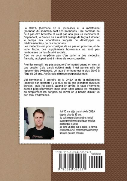 La DHEA (hormone de la jeunesse) et la mélatonine (hormone du sommeil) sont des hormones. Une hormone ne peut pas être brevetée et n'est pas non plus un médicament. Cependant, la France en a restreint l'usage de façon à donner le temps aux laboratoires français de développer un médicament issu de ces hormones. Les médecins ont pour consigne de ne pas en prescrire, et de toute façon, ces suppléments hormonaux ne sont pas remboursés par la sécurité sociale.