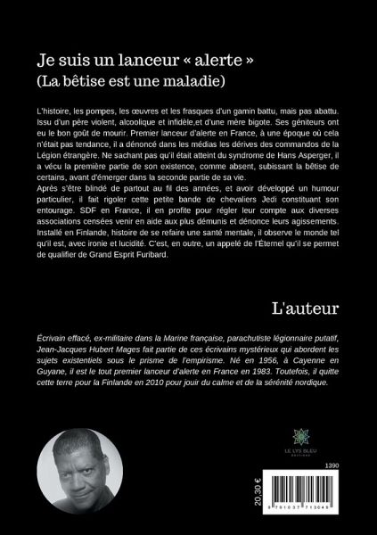 L'histoire, les pompes, les ¿uvres et les frasques d'un gamin battu, mais pas abattu. Issu d'un père violent, alcoolique et infidèle,et d'une mère bigote. Ses géniteurs ont eu le bon goût de mourir. Premier lanceur d'alerte en France, à une époque où cela n'était pas tendance, il a dénoncé dans les médias les dérives des commandos de la Légion étrangère. Ne sachant pas qu'il était atteint du syndrome de Hans Asperger, il a vécu la première partie de son existence, comme absent, subissant la bêtise de certains, avant d'émerger dans la seconde partie de sa vie. Après s'être blindé de partout au fil des années, et avoir développé un humour particulier, il fait rigoler cette petite bande de chevaliers Jedi constituant son entourage. SDF en France, il en profite pour régler leur compte aux diverses associations censées venir en aide aux plus démunis et dénonce leurs agissements. Installé en Finlande, histoire de se refaire une santé mentale, il observe le monde tel qu'il est, avec ironie et lucidité. C'est, en outre, un appelé de l'Éternel qu'il se permet de qualifier de Grand Esprit Furibard.