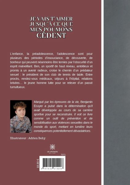 L¿enfance, la préadolescence, l¿adolescence sont pour plusieurs des périodes d¿insouciance, de découverte, de bonheur qui peuvent néanmoins être ternies par l¿obscurité d¿un esprit malveillant. Ben, un sportif de haut niveau, ambitieux et promis à un avenir radieux, croise le chemin d¿un prédateur sexuel : le président de son club de tennis de table. Entre procès, rendez-vous médicaux, séjours à l¿hôpital, relations brisées¿ le jeune homme lutte pour se relever d¿un passé tumultueux.