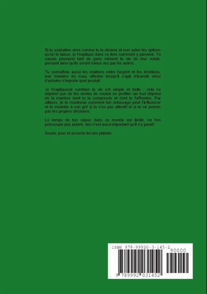 Il s'agit d'un manuel permettant de comprendre le mal que tu peux connaître si tu ne vis pas comme tu le sens. Tu comprendras l'importance des émotions en ce qui concerne ton comportement dans n'importe quel milieu social, que ce soit dans le monde de l'économie ou plus simplement dans une réunion d'amis. Tu comprendras pourquoi beaucoup de gens vivent d'apparences et non comme ils sont réellement. Je te raconterai toutes les peurs et les frustrations qui les poussent à vivre de cette manière. Tu te rendras compte également que vivre c'est simplement cela, vivre. C'est toi qui décides si tu vis triste et frustré ou, au contraire, heureux et content.