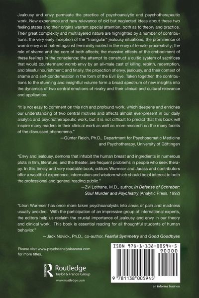 Jealousy and envy permeate the practice of psychoanalytic and psychotherapeutic work. New experience and new relevance of old but neglected ideas about these two feeling states and their origins warrant special attention, both as to theory and practice. Their great complexity and multilayered nature are highlighted by a number of contributions: the very early inception of the "triangular" jealousy situations; the prominence of womb envy and hatred against femininity rooted in the envy of female procreativity; the role of shame and the core of both affects; the massive effects of the embodiment of these feelings in the conscience (i.e., the envious and resentful attacks by the "inner judge" against the self); the attempt to construct a cultic system of sacrifices the would countermand womb envy by an all-male cast of killing, rebirth, redemption, and blissful nourishment; and finally, the projection of envy, jealousy, and their context of shame and self-condemnation in the form of the Evil Eye. Taken together, the contributions to the stunning and insightful volume form a broad spectrum of new insights into the dynamics of two central emotions of rivalry and their clinical and cultural relevance and application.